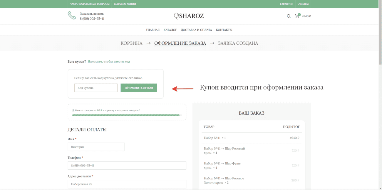 Как воспользоваться купоном на скидку?​