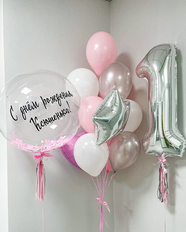 Шар с перьями и индивидуальной надписью